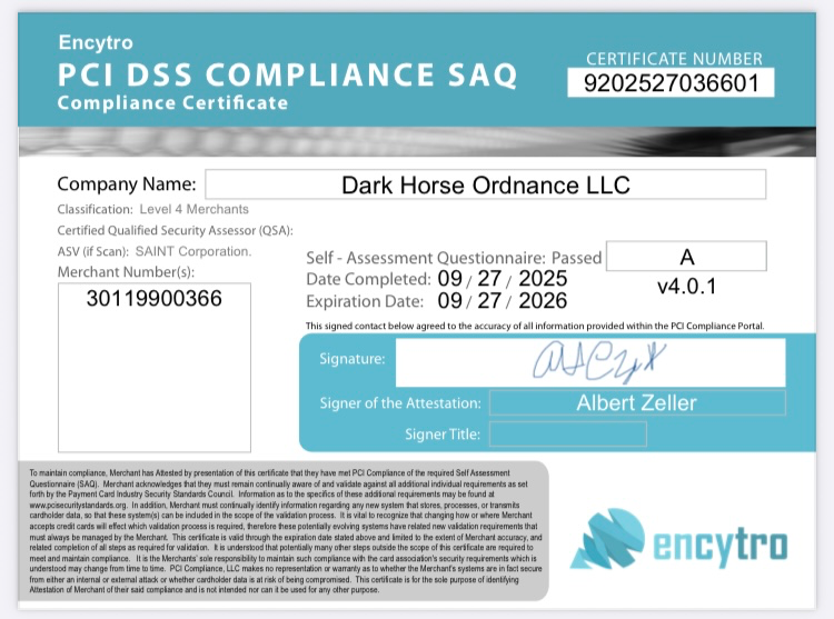 We utilize a secure third party provider to process our credit & debit card payments (which is also 256 bit secure encrypted to conform to PCI compliance standards.)